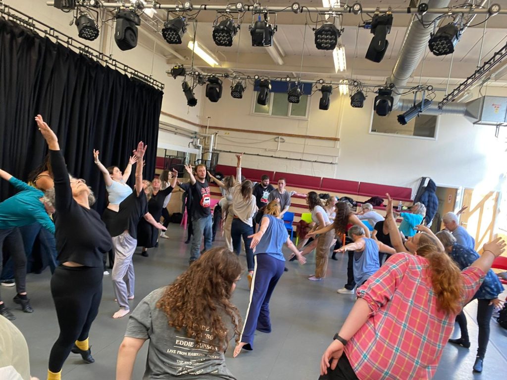 Dance is the perfect medium to bring people together. It has a positive impact on people’s lives. I teach workshops in schools and colleges and I also enjoy bringing older and younger dancers together to share ideas and experiences (see photo above). I can offer one off workshops, a project or a series of dance sessions in community or school environments.